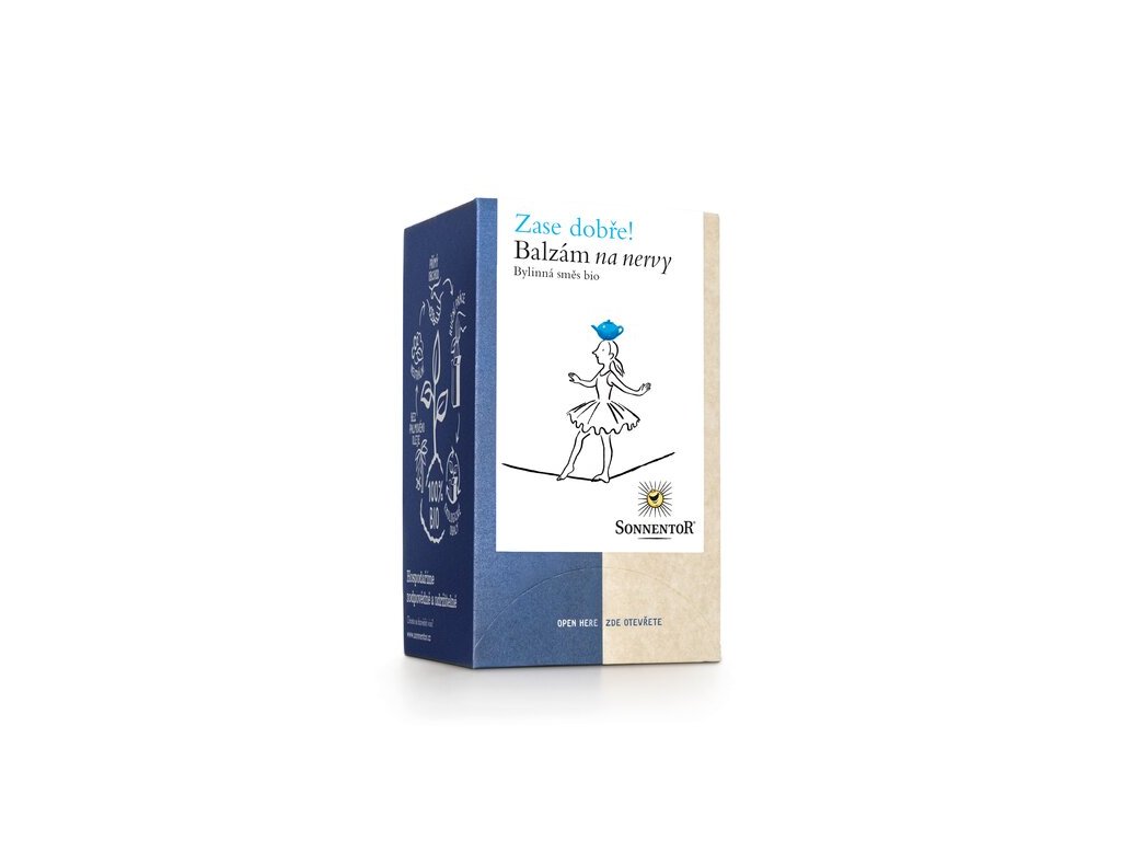 Balzám na nervy® je čaj, který si nejlépe vychutnáte ve chvíli, kdy chcete na chvíli vypnout a nechat den zpomalit. Kombinace aromatických bylinek vytváří vyvážený nálev s příjemně bylinným charakterem, který působí klidně a harmonicky.