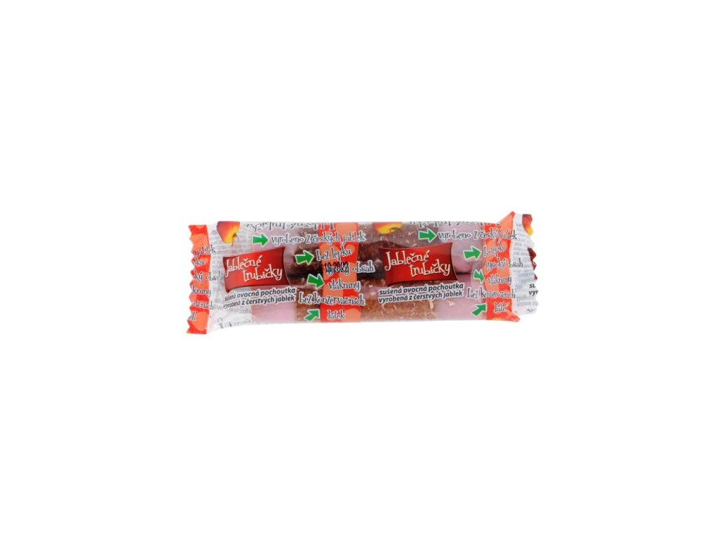 Složení je záměrně jednoduché: jablečná dřeň, jogurtová poleva s jahodovou příchutí a kokos. Konce trubiček jsou namočené do kvalitní polevy od českého výrobce a na závěr lehce posypané kokosem – pro jemnou sladkost a příjemné „křupnutí“.