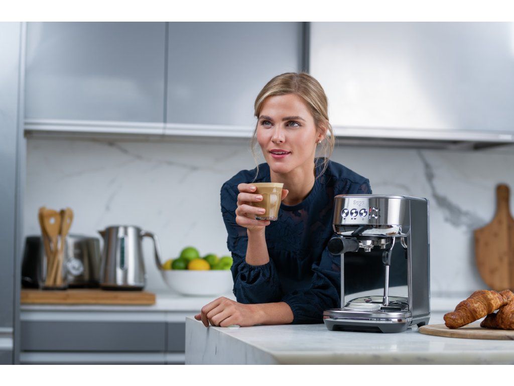 Sage Bambino™ Plus (SES500BSS) – kompaktní pákový kávovar, ideální do menších kuchyní. I přes své rozměry zvládne perfektní espresso i krémové cappuccino s napěněným mlékem.