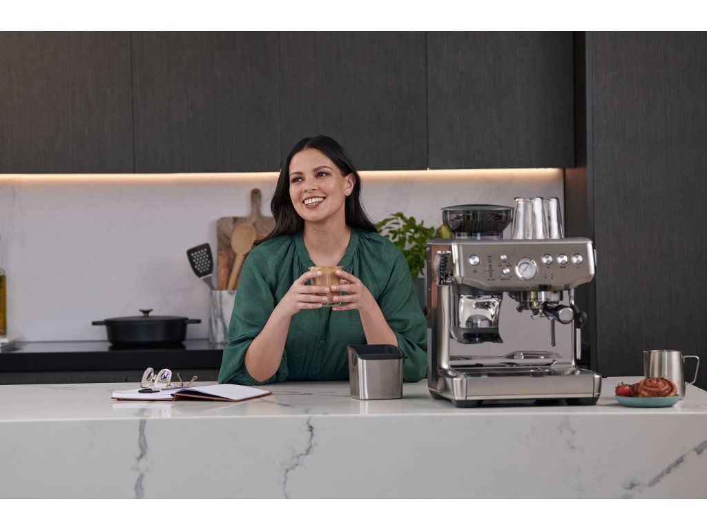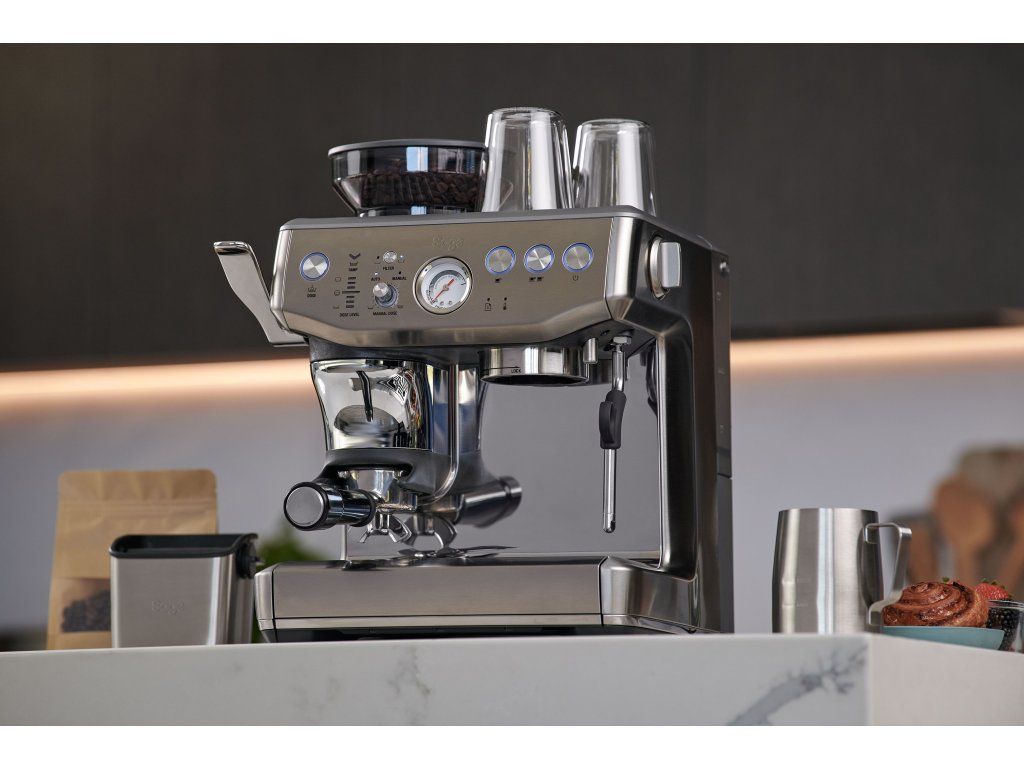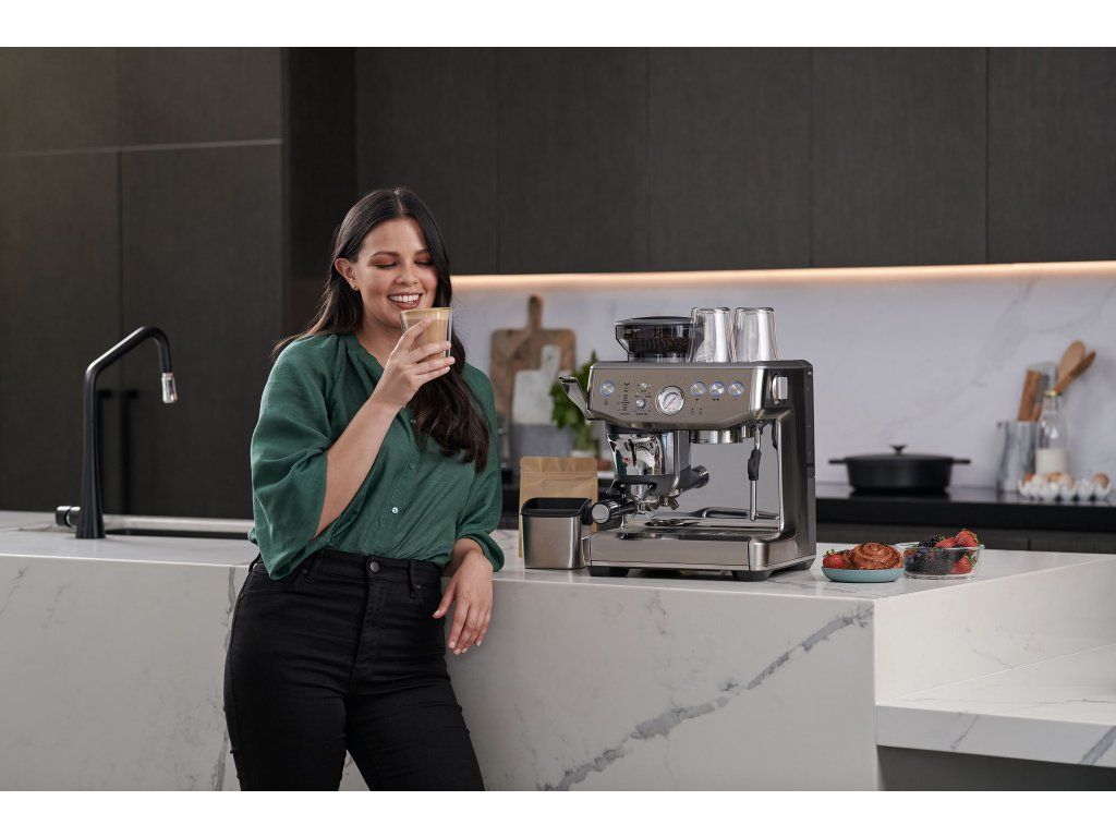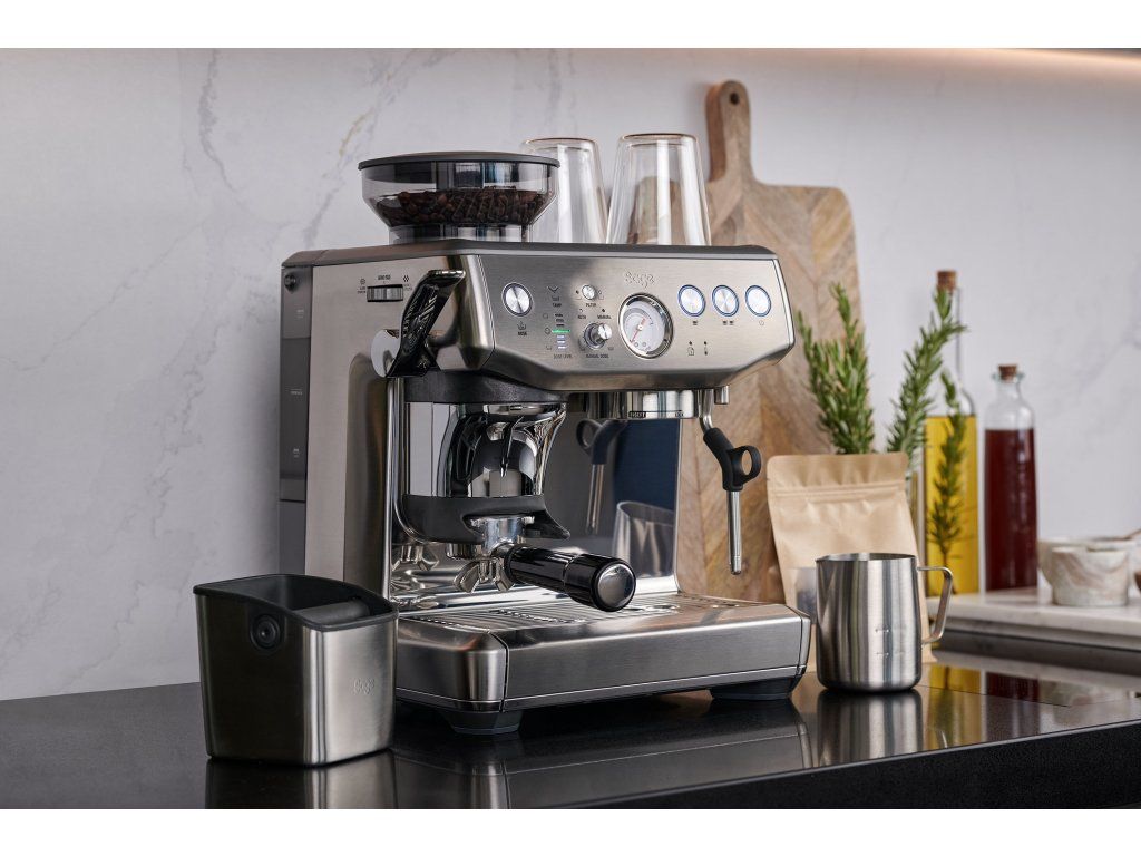 Sage Barista Express™ (BES875BSS) – jeden z nejoblíbenějších modelů. Integrovaný mlýnek, parní tryska a PID regulace teploty z něj dělají špičku mezi domácími kávovary.